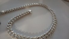 Full-fledged silver chain around the neck.